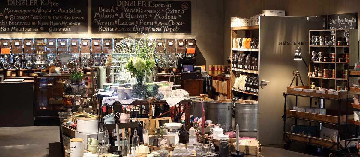 Hereinspaziert in unseren Bohnenladen im Haupthaus von DINZLER am Irschenberg. Hier, direkt neben der offenen Kaffeerösterei in der es herrlich duftet, finden Sie eine laufend wechselnde Auswahl an kleinen Geschenken, an besonderem Geschirr, an Praktischem und Schönem. Neben diesen Besonderheiten erhalten Sie unser gesamtes Kaffee- und Espressosortiment in unterschiedlichen Größen sowie Schokolade und Feinkost. Wir beraten Sie gerne!