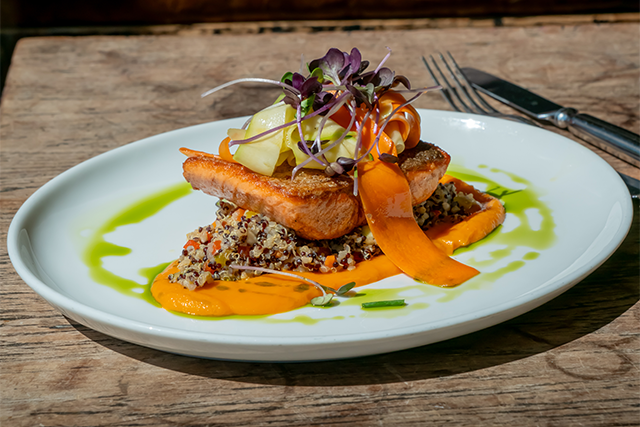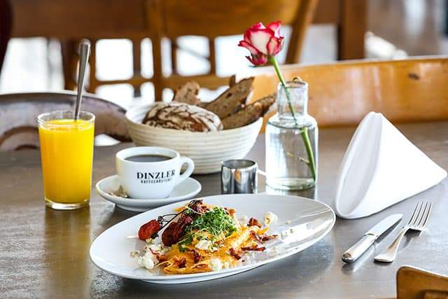 Markus liebt klassische Pfannengerichte, wie Zwiebelrostbraten, und setzt gerne auf handwerkliche Zubereitung – „Soßen und Suppen sind meine Welt“, so der Küchenchef. Ein Gericht, das niemals auf der Karte fehlen darf, ist das Wiener Schnitzel, das bei DINZLER frisch geklopft und in der Pfanne gebraten wird – ganz nach österreichischer Tradition.
