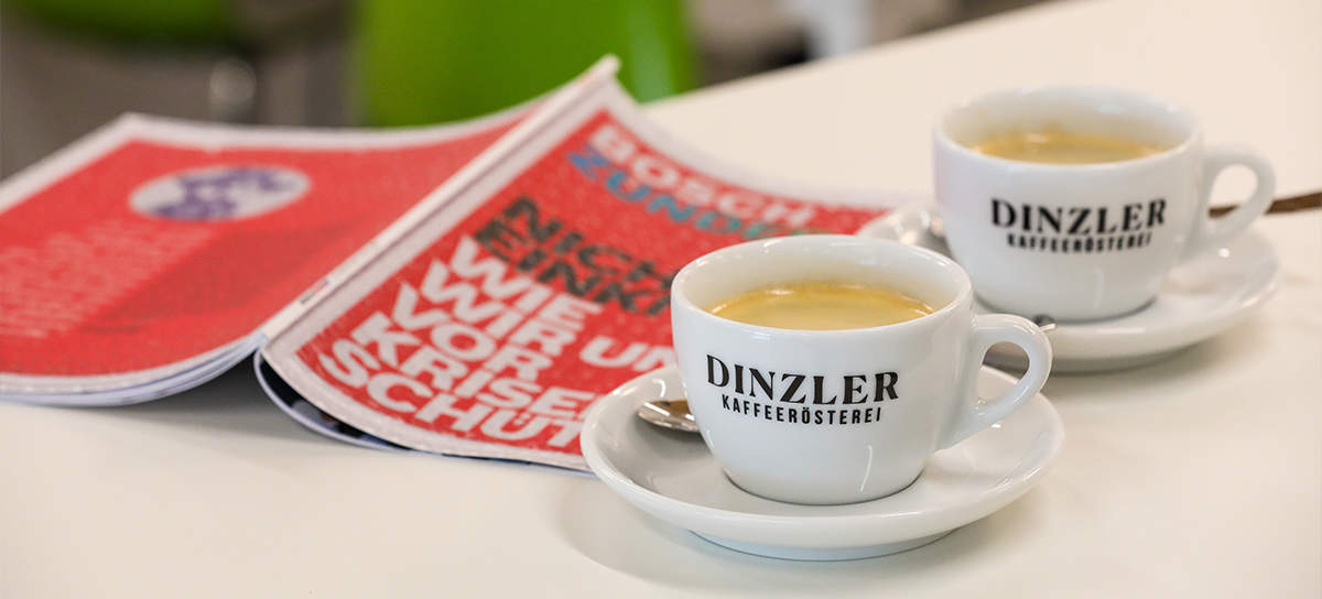 Immer einen Schritt voraus zu sein, das verbindet die DINZLER Kaffeerösterei mit der Robert Bosch GmbH, einem der größten deutschen Familienunternehmen. Am Bosch Collaboration Campus Holzkirchen ist die DINZLER Kaffeerösterei stolzer Kaffee-Partner von Bosch Engineering und ITK Engineering. Seit 2016 genießen die Mitarbeiter vor Ort Kaffeespezialitäten aus der nur wenige Kilometer entfernten DINZLER Kaffeerösterei. 2022 wurde der Standort zu einem Entwicklungscampus erweitert – natürlich mit der passenden Kaffee-Lösung.