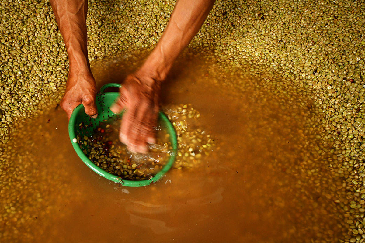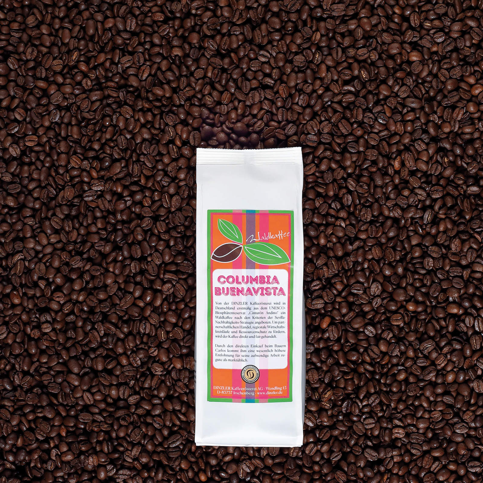 Das feuchtwarme Klima in dieser Gegend Kolumbiens eignet sich hervorragend für den Anbau von Kaffeepflanzen. Nicht zu warm, nicht zu kalt, nicht zu trocken, nicht zu feucht – die Kaffeepflanze zählt zu den anspruchsvolleren Pflanzen und braucht besonders viel Wissen und Betreuung, um Kaffeekirschen in optimaler Qualität zu ernten. Die Plantagen von Carlos beeindrucken durch ihre verwachsene, fast schon “wilde” Struktur. Seine Mischkultur entsteht durch die Kombination aus den Kaffeestauden mit Schattenbäumen. Dafür pflanzt der Landwirt unter anderem die Spezies Guamo oder Arrayán, sowie Kochbananenstauden oder Zitrusbäume, wie Orange, Mandarine, Limone. Teilweise hat man das Gefühl, man steht mitten im Wald und nicht auf einer kultivierten Plantage, doch gerade diese Art des Kaffeeanbaus ist ein Garant für Artenvielfalt und Diversität. Da die Hänge direkt im Biosphärenreservat liegen, sind die Möglichkeiten der Bewirtschaftung stark reguliert. Carlos muss daher seine Plantagen besonders naturnah bewirtschaften – immer im Einklang mit der Natur. Der Anbau und die Ernte werden in kompletter Handarbeit geleistet – etwas anderes ist in den verwachsenen Hängen gar nicht möglich. Zudem dürfen aufgrund der Regularien im Reservat keine Pestizide verwendet werden. Bei konventionell angebautem Kaffee bleiben Rückstände der verwendeten Pestizide im Kaffee und beeinflussen auch nach der Röstung den Geschmack. Zudem wirken sich aggressive Spritz- und Insektenvernichtungsmittel negativ auf die Artenvielfalt aus und zerstören so langfristig die Natur. Das naturnahe Konzept und die Arbeitsweise auf Carlos Finca entspricht genau den Ansprüchen der DINZLER Kaffeerösterei: ein nachhaltiger Kaffee aus Kolumbien in absoluter Premium-Qualität! Bei DINZLER am Irschenberg rösten die Röstmeister aus Carlos Rohkaffee den DINZLER Kaffee Columbia Buenavista.
