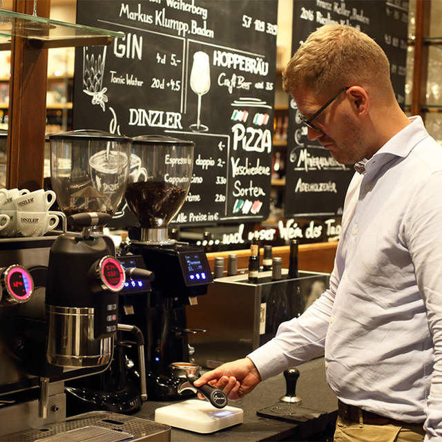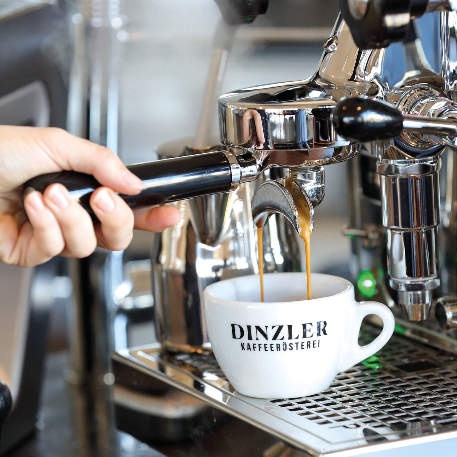 Für die Zubereitung des perfekten Espressos müssen alle Parameter wie Kaffeesorte, Mahlgrad, Kaffeemenge, Wasserdruck, Brühtemperatur und Durchlaufzeit perfekt aufeinander abgestimmt sein. Wenn Sie dabei nichts dem Zufall überlassen wollen, bringen Sie Ihre Kaffeemaschine inklusive Kaffeemühle und Kaffeebohnen doch einfach zu uns. Unsere Experten stellen gemeinsam mit Ihnen Ihre Kaffeemaschine und Mühle Ihren Vorlieben entsprechend so ein, dass Sie zu Hause optimale Ergebnisse in der Kaffeezubereitung erzielen werden. Wenn Sie Ihre Maschine auf eine unserer hauseigenen DINZLER Kaffeeröstungen einstellen lassen, erhalten Sie 500 g Ihrer favorisierten Kaffeesorte als Geschenk dazu.