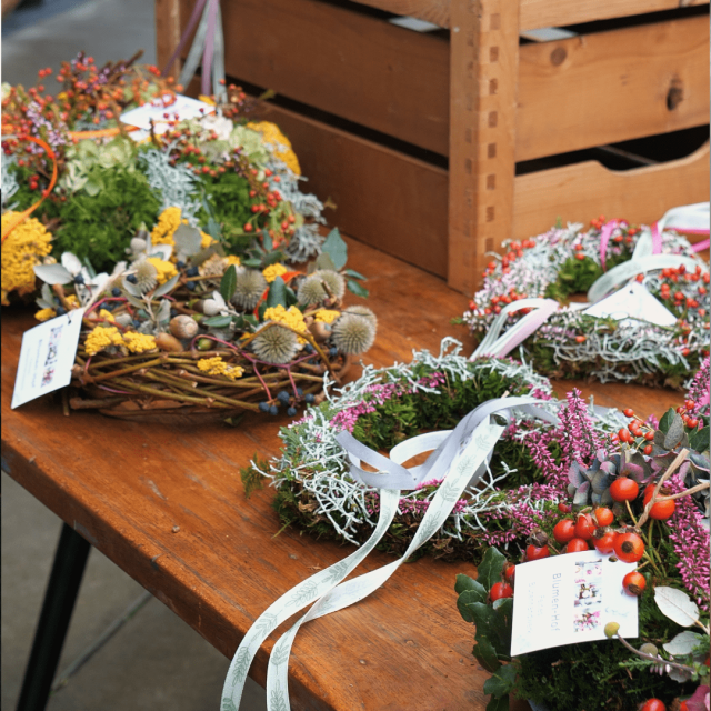 Kränze und Gestecke, natürlich und harmonisch, liebevoll gestaltet von Monika Welzmüller – ganz so, wie Sie es von unserer wöchentlichen Dekoration bei DINZLER kennen.