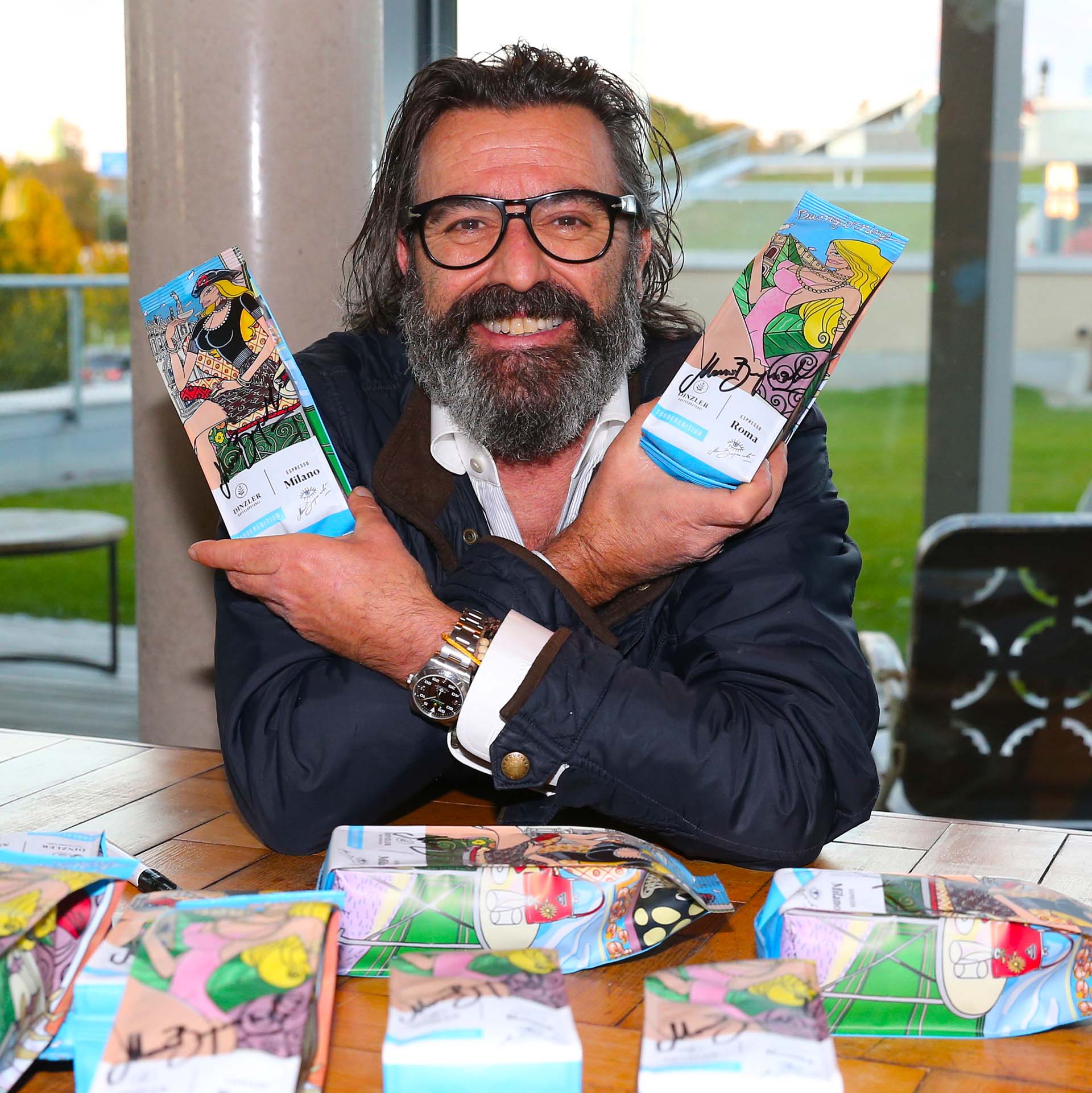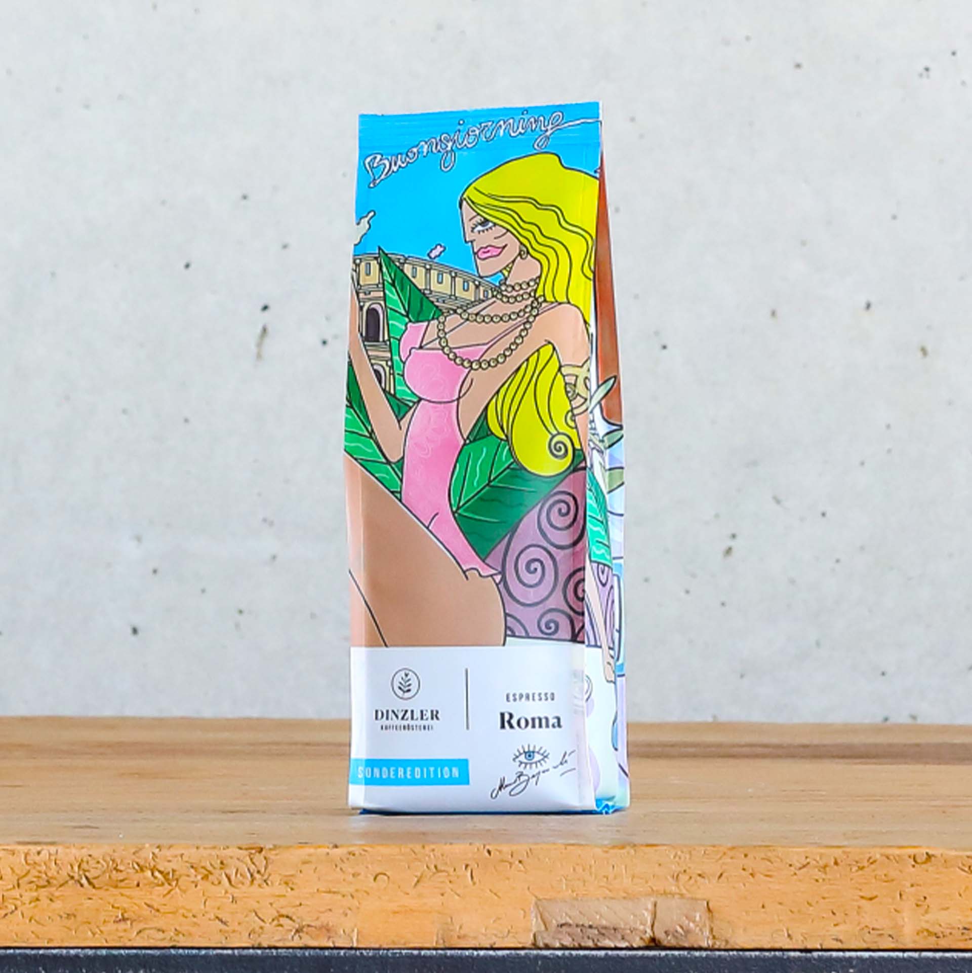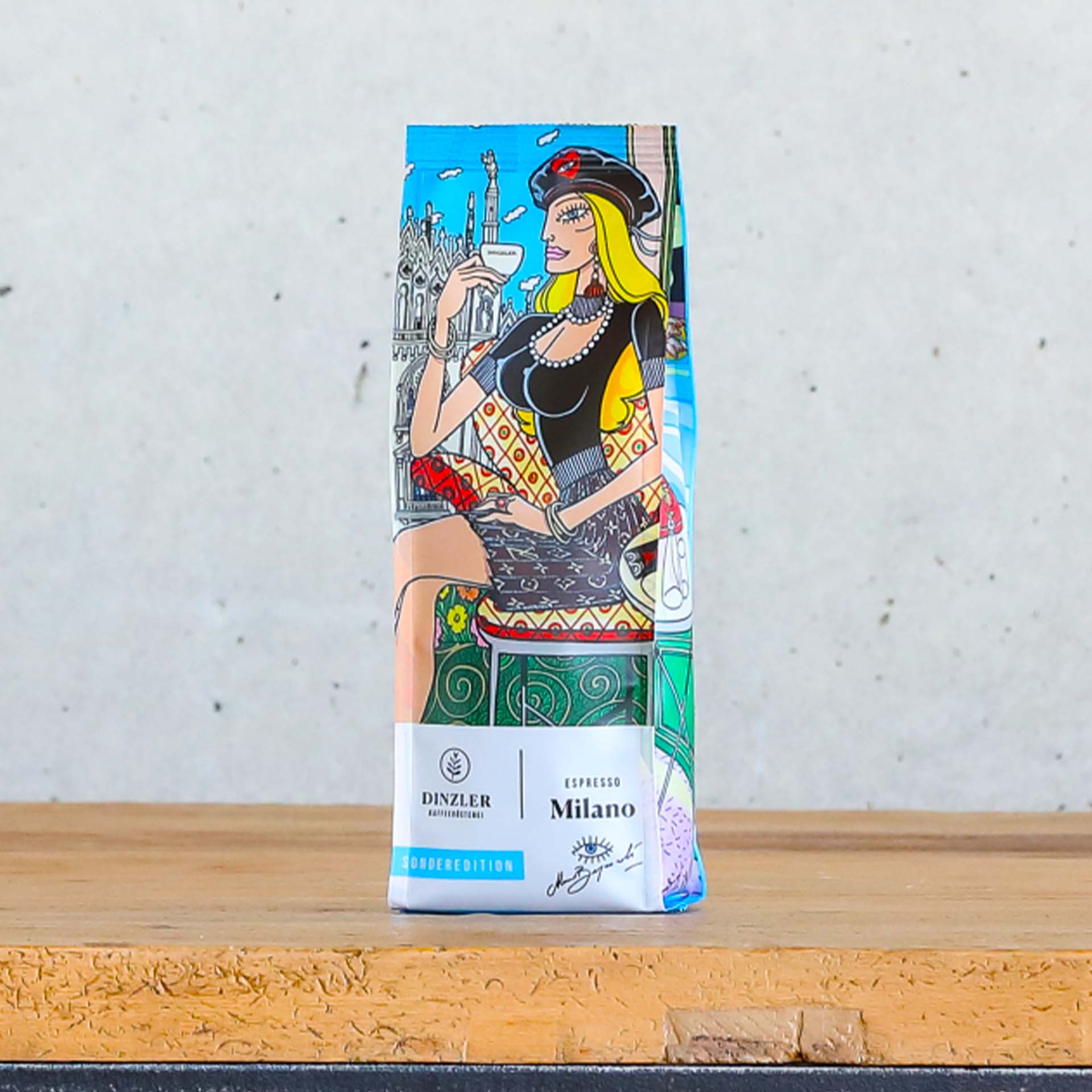 Als gebürtiger Italiener bezeichnet sich Mauro Bergonzoli selbstverständlich als leidenschaftlicher Espressotrinker. Kaffee bedeutet für ihn: Kultur, Geschmack, sich Zeit nehmen, um den Moment zu genießen. Er schätzt es, die Energie und Stimulation, die der köstliche Espresso schenkt, in produktive und erfüllende Arbeit umzuwandeln. Höchste Zeit also für die DINZLER Espresso-Sondereditionen: Der DINZLER Espresso Roma Sonderedition Mauro Bergonzoli und DINZLER Espresso Milano Sonderedition Mauro Bergonzoli. Dafür hat der Künstler zwei Verpackungen in seinem typisch lebendigen Stil designt.