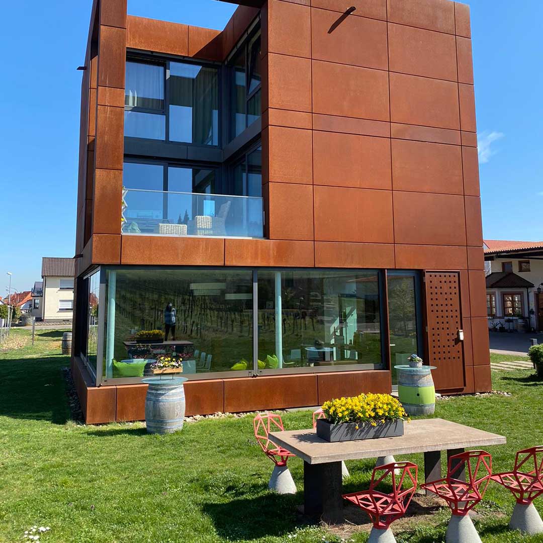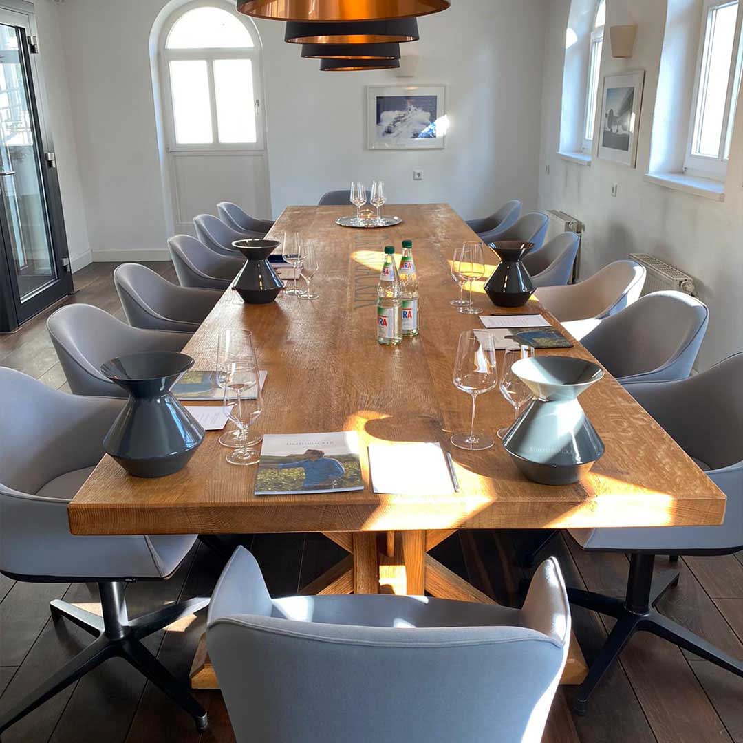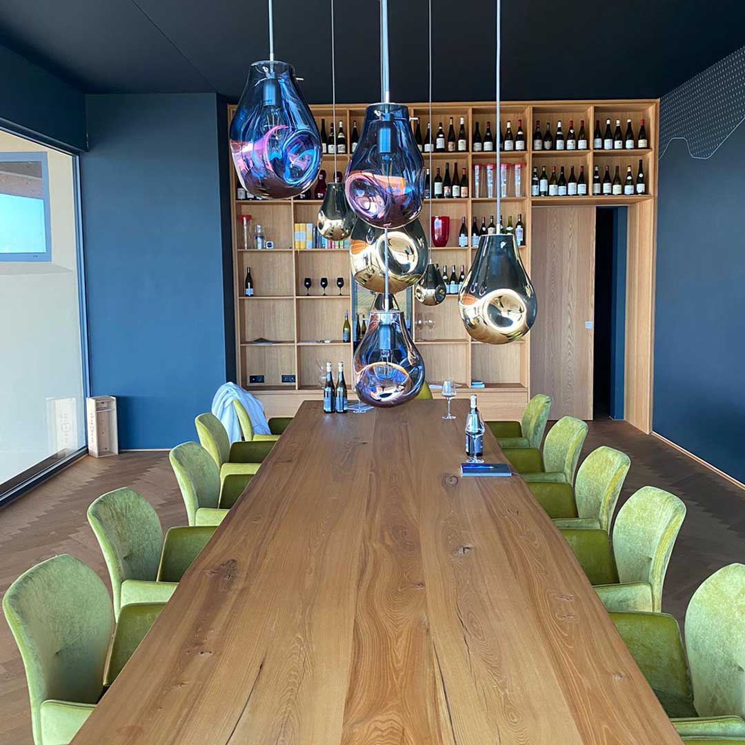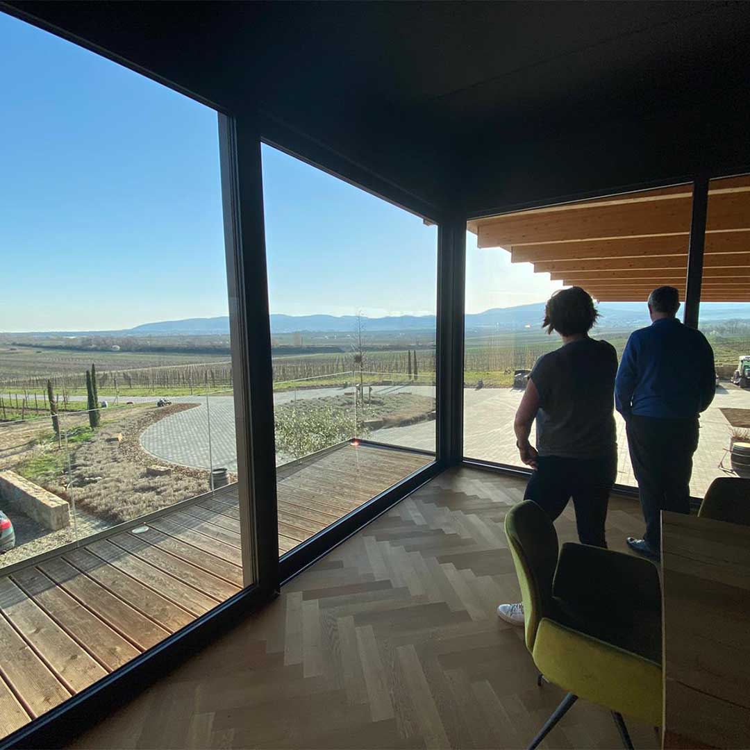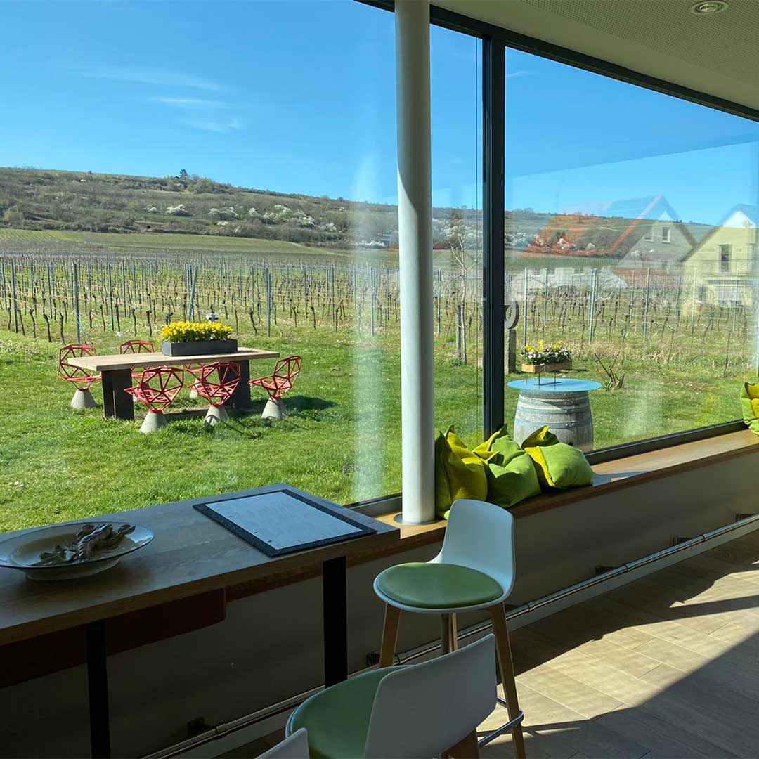 Zum Abschluss des zweiten Tages besuchten wir das Weingut Rings. Der imposante und faszinierende Neubau des Weinguts ist definitiv einen Besuch wert. Ein besonderes Erlebnis ist der Verkostungsraum mit seinem 180° Panorama über die Kreuzlage im Rheinauslauf, in dem alle Sinne angesprochen werden!