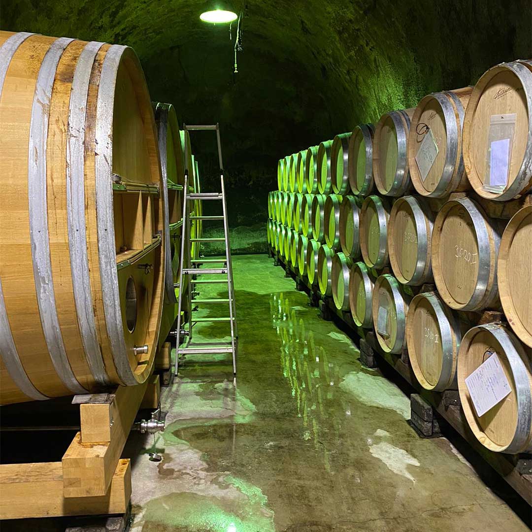 Das Weingut Franz Keller in Oberbergen am Kaiserstuhl ist wohl eins der renommiertesten Weingüter Deutschlands mit einer beeindruckenden Geschichte rund um guten Wein und gutes Essen. Im hauseigenen Sternerestaurant, dem Schwarzen Adler, wird seit Jahrzehnten guter Wein zu hervorragendem Essen serviert. Die Idee Weine für die große Tafel zu erzeugen, ist auch heute noch Grundlage der Arbeit der Familie Keller. Der mitten in die Natur integrierte Neubau, ermöglicht es Most und Saft nur durch Gravitation zu bewegen, was für eine besonders schonende Traubenbehandlung sorgt, die sich in jedem Glas bemerkbar macht.