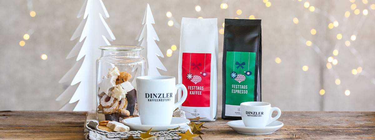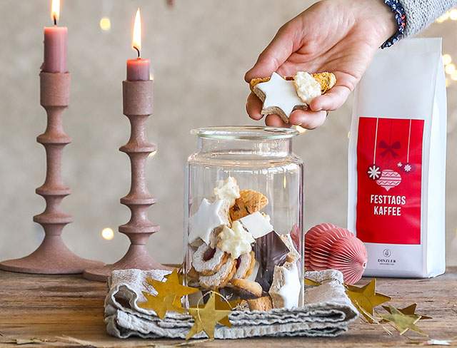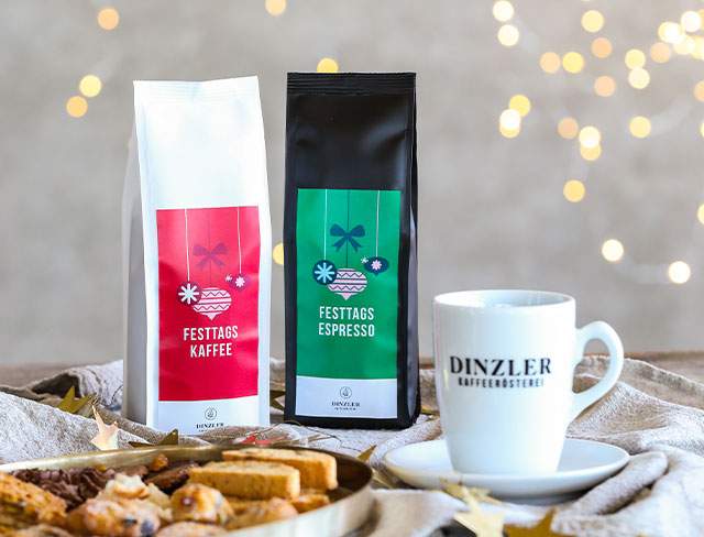 Auch in der DINZLER Kaffeerösterei zählt die Weihnachtszeit zu den ganz besonderen Wochen im Jahr. Bereits im Sommer haben wir damit begonnen unsere Genussexpertise aus der Kaffeerösterei, der Konditorei, der Vinothek und dem Bohnenladen zu bündeln, um einzigartige Kaffee Geschenke für Weihnachten zu kreieren. Bei DINZLER erhalten Sie nicht nur hochwertige Kaffee-Produkte, sondern auch speziell zusammengestellte Geschenkboxen mit einer Vielfalt von handwerklich hergestellten Köstlichkeiten. Diese einzigartigen DINZLER Kaffee Geschenke bieten eine ideale Möglichkeit, Ihren Liebsten zu Weihnachten eine Freude zu bereiten. Vom weihnachtlich festlichen Filterkaffee – dem DINZLER Festtagskaffee – über feine Zimtsterne aus der DINZLER Konditorei bis zur prickelnden Flasche Prosecco aus der DINZLER Vinothek sind die DINZLER Kaffee Geschenke für alle Genussliebhaber und Gourmets ein passendes Weihnachtsgeschenk. Ob für Kaffeeliebhaber, Naschkatzen oder Liebhaber edler Getränke - in den Geschenkboxen finden sich ausgesuchte Delikatessen, mit denen Sie Kaffeeliebhabern und Genießern garantiert eine Freude bereiten.