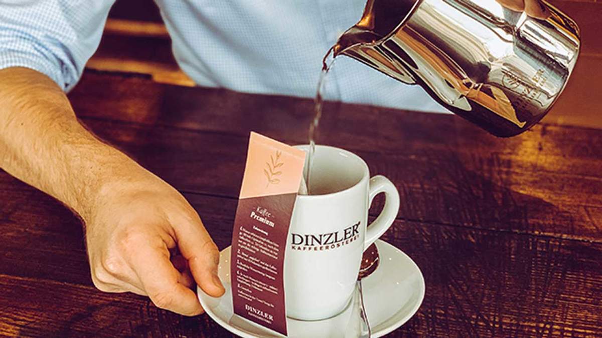 Kaffee zubereiten mit dem DINZLER Kaffeebeutel