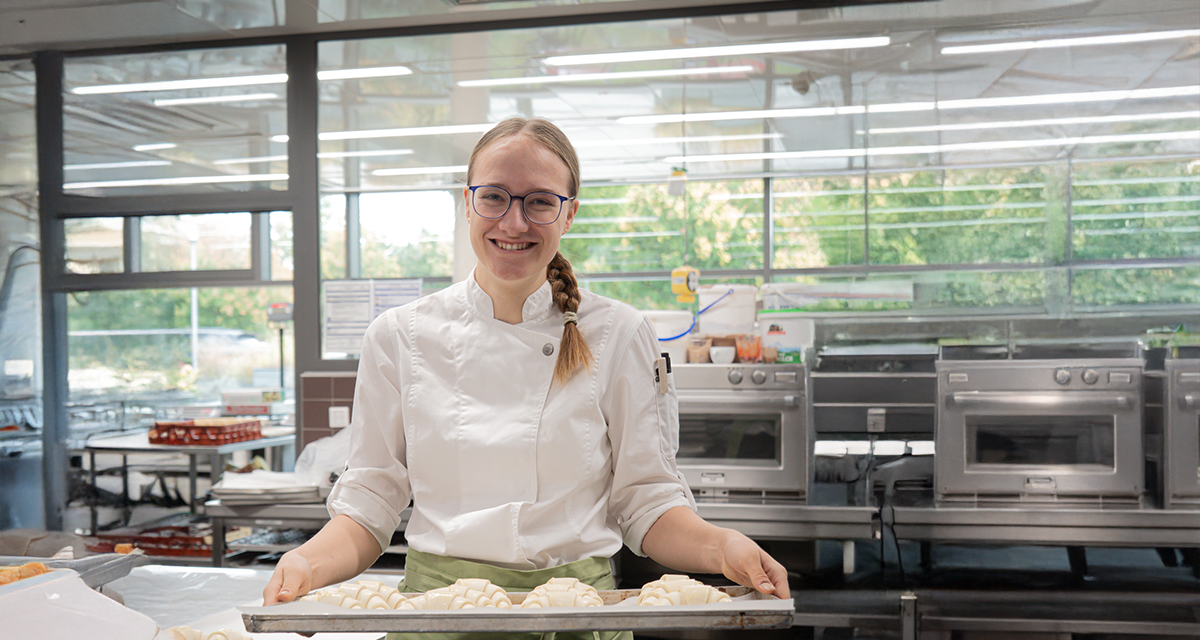 In der Konditorei entstehen jeden Tag viele verschiedene süße Backwaren: "Das meiste sind unsere Kuchen, nach den Rezepten von Rosi Braun. Dann haben wir Torten, Croissants und Brioche für die Theke, Gebäck und Kekse für den Laden," erklärt Konditor Giordano Colombi.