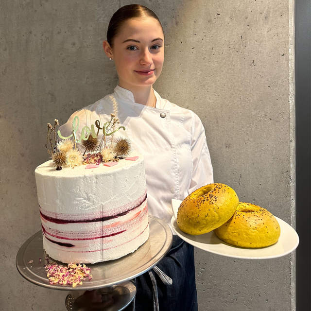 Um 6 Uhr beginnt der Arbeitstag von Linda-Maria. Die Konditorei am Irschenberg läuft da bereits auf Hochtouren. Croissants, Torten oder Weihnachtsplätzchen – jedes Gebäck bei DINZLER kommt aus der hauseigenen Konditorei. Hier wird noch nach traditionellem Konditorenhandwerk gearbeitet. “Ich habe bereits seit der 5. Klasse verschiedene Praktika gemacht – hier bei DINZLER in der Konditorei hat es mir einfach am besten gefallen”, beschreibt Linda-Maria ihren Weg zu DINZLER. “Am besten gefällt mir das Kreative an diesem Beruf, also das Modellieren und Formen sowie neue Rezepte zu kreieren. Aber auch die alltäglichen Vorbereitungs- und Backaufgaben sind schön.” Neben dem Gebäck für die Gastronomie stellen die Konditoren bei DINZLER auch Torten auf Bestellung her. Hier kann man besonders oft beim Verzieren und Modellieren kreativ werden.