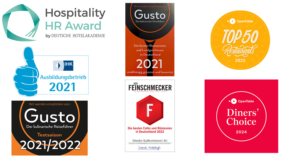 In den letzten Jahren haben auch wir ein kleines Portfolio an Auszeichnungen für Gastronomie, Mirarbeiterbindung und auch Architektur aufgebaut. Doch von unserem Handeln und unserer Philosophie lassen wir uns mit oder ohne Auszeichnung und Siegel nicht abbringen. Das leben wir. Nachhaltigkeit ist für uns kein Trend, sondern in unserem Verhalten fest verankert. Neben unserem „Direkt gehandelt“-Ansatz mit den Kaffeebauern im Ursprungsland, setzen wir uns mit verschiedenen Projekten für sozial schwache Menschen ein. Freude an der Arbeit lässt das Werk trefflich geraten. Dieses Zitat stammt nicht von uns, sondern von Aristoteles. Doch spiegelt es unseren Ansatz wieder. Wir wollen unsere Mitarbeiter integrieren (20 verschiedene Nationen), ausbilden (8 Ausbildungsberufe – 30 Auszubildende) und entwickeln uns gemeinsam weiter.